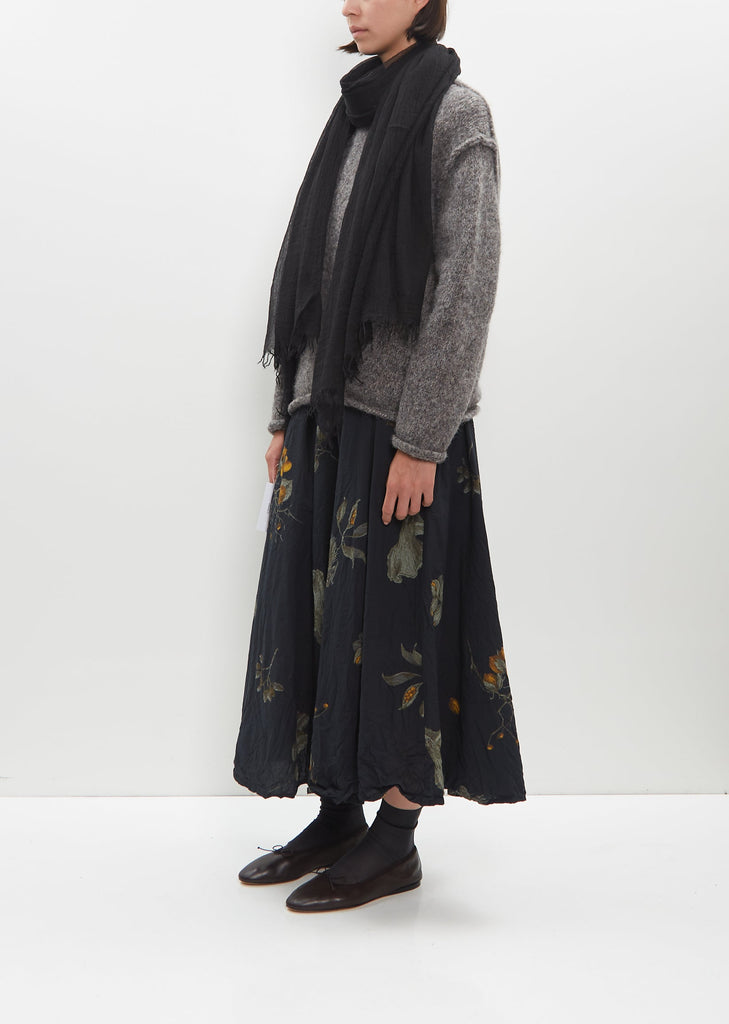 Pas de Calais black stole with a rectangle shape and frayed edges in lightweight cashmere with a crinkle effect.