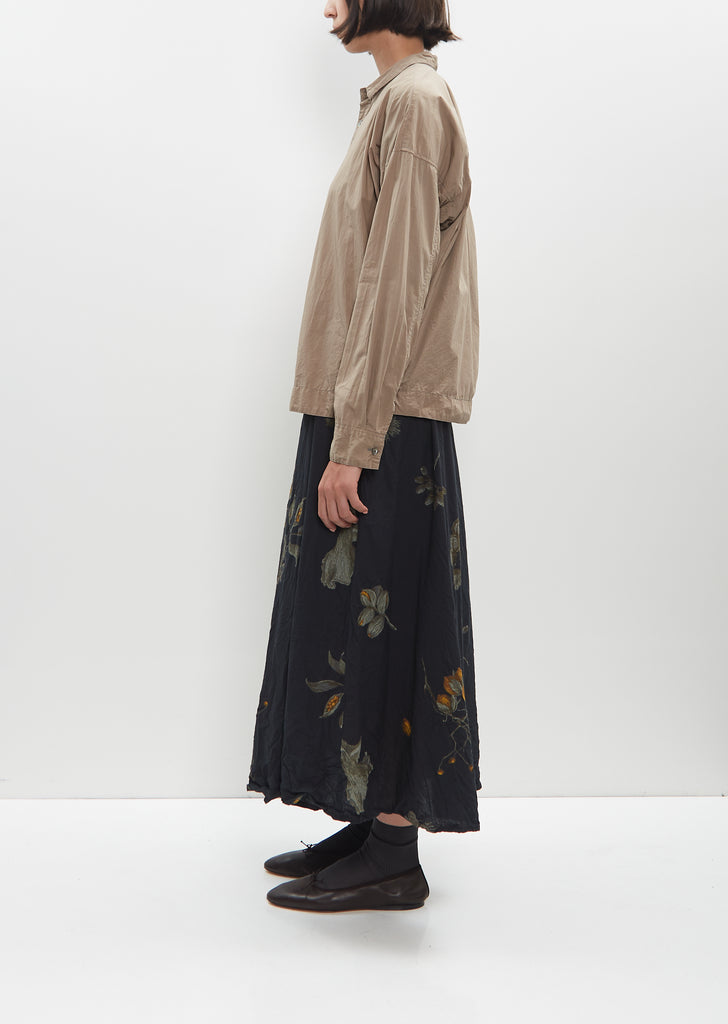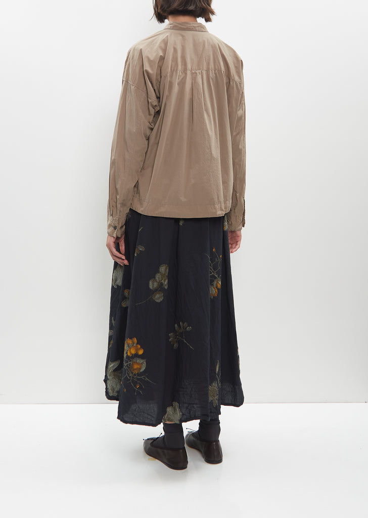 Pas de Calais khaki button-down shirt with a pointed collar and dropped shoulders in a lightweight cotton with a crinkled effect. Features buttoned cuffs, back yoke detail with box pleat and a straight hem. Finished with a dark shell-hued buttons closure.