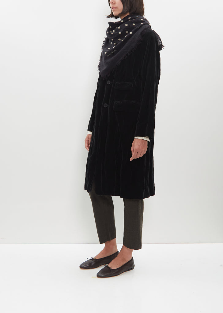 Pas de Calais black and beige dots square scarf in lightweight wool. Features frayed edges.