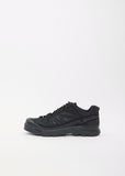 Salomon black and asphalt grey low-top sneakers in suede leather and canvas. Features a rubberized, toe box, a lateral power band, a full length Edging Chassis skeleton for stability, dual EVA cushioning in the midsole to protect feet and ensure soft landings, and a molded OrthoLite insole, a rubber sole and contrasting laces fastening. Fully lined in tonal EndoFit mesh.