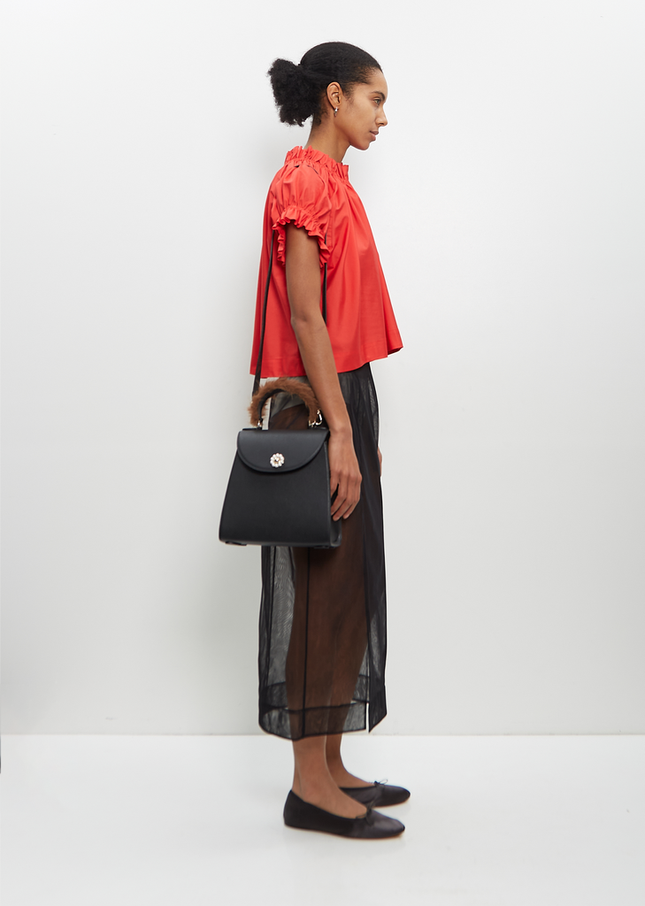 Simone Rocha black handbag with faux pearl daisy detail and a rounded top handle in grained leather. Features branded hardware, a detachable shoulder strap and a single interior slip pocket. Lined in leather.