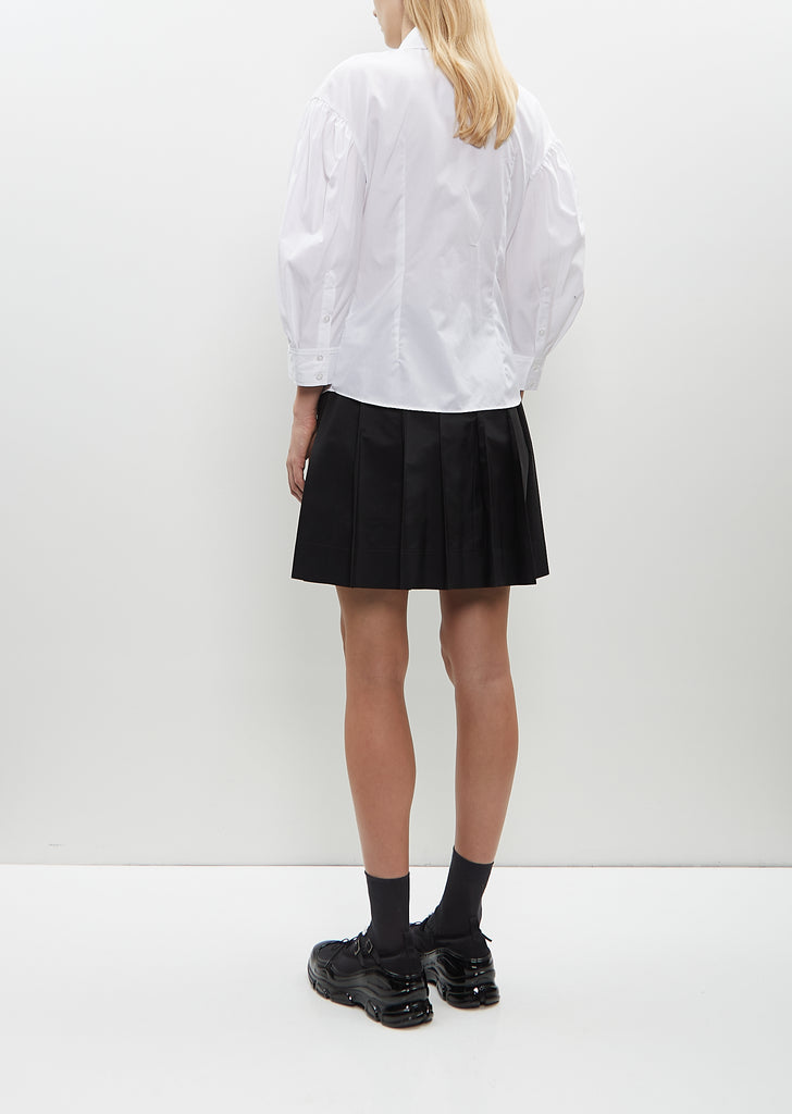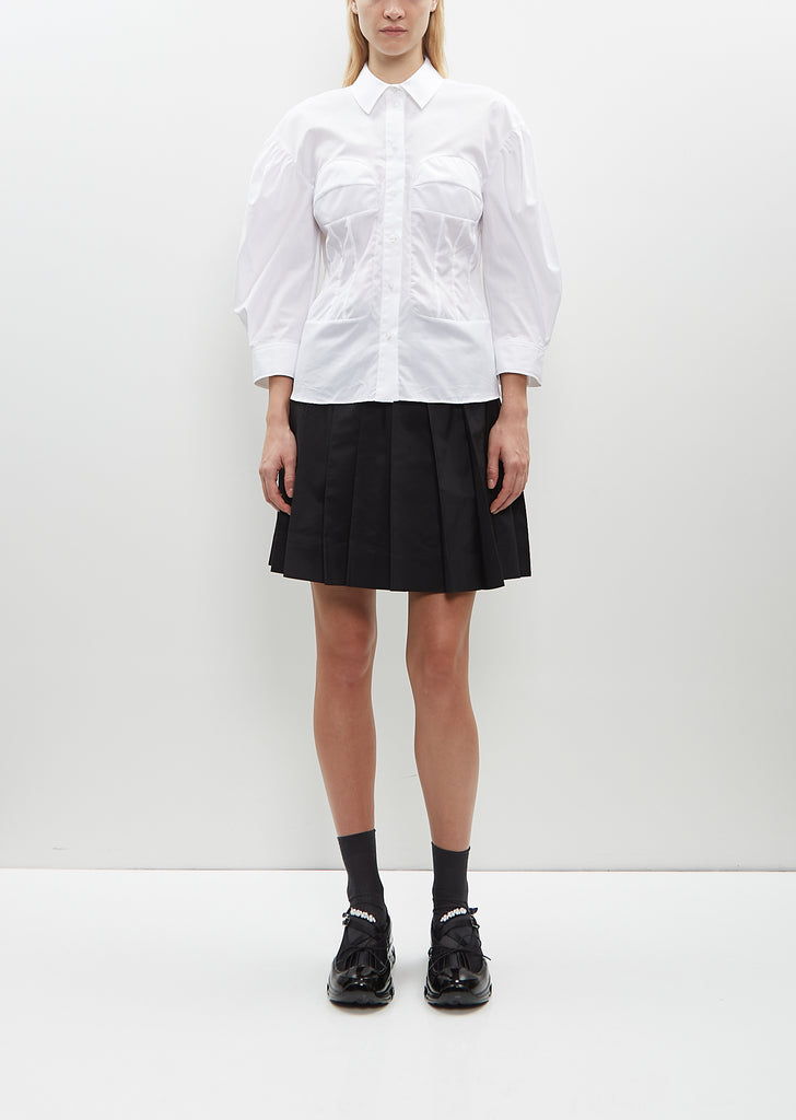 Simone Rocha white corset shirt with puff sleeves and a classic shirt collar in cotton poplin. Features a tonal buttons closure at front and cuffs. Closer fit.