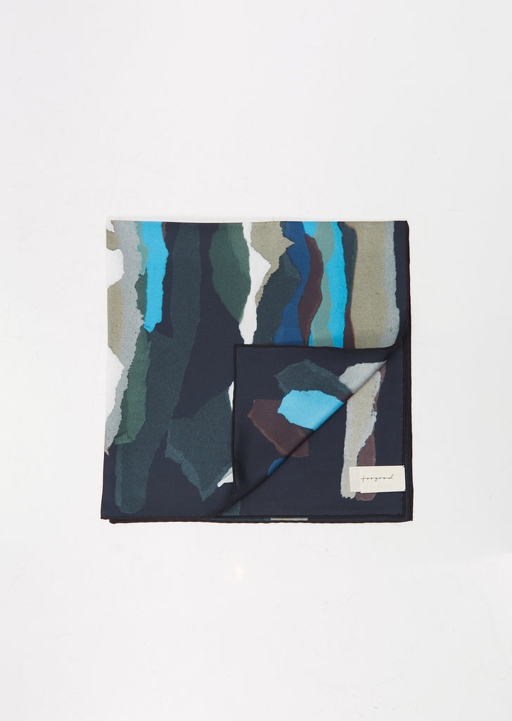 TOOGOOD scarf with a square shape in silk with an abstract torn paper print that creates a camouflage effect.