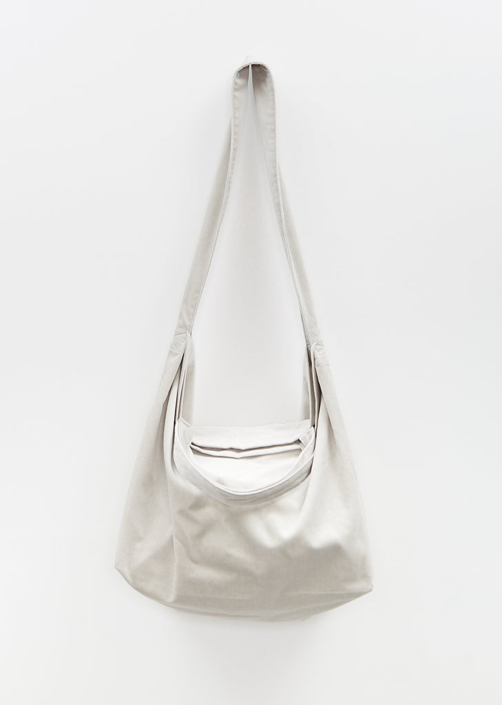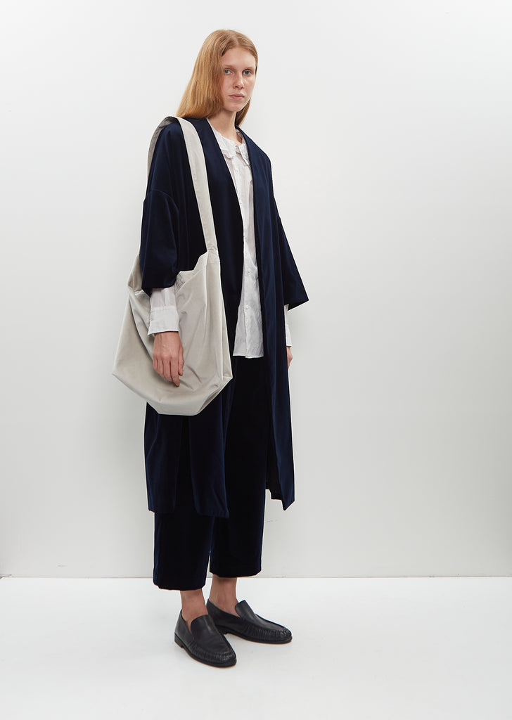 Toujours smoke gray tote bag with shoulder strap and top handles in cotton velvet. Features a single interior patch pocket. Unlined.