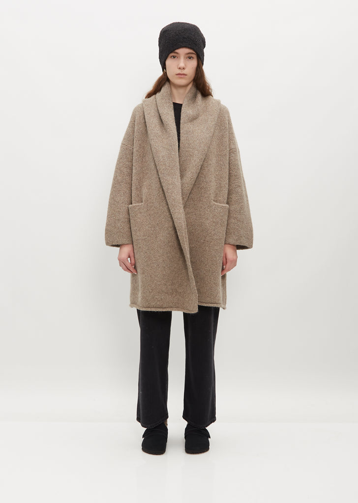 Lauren Manoogian black melange brimless bucket hat with a flat top hand crocheted in merino wool.