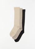 Lauren Manoogian set of three knee high socks in a baby alpaca and wool blend with a touch of stretch.