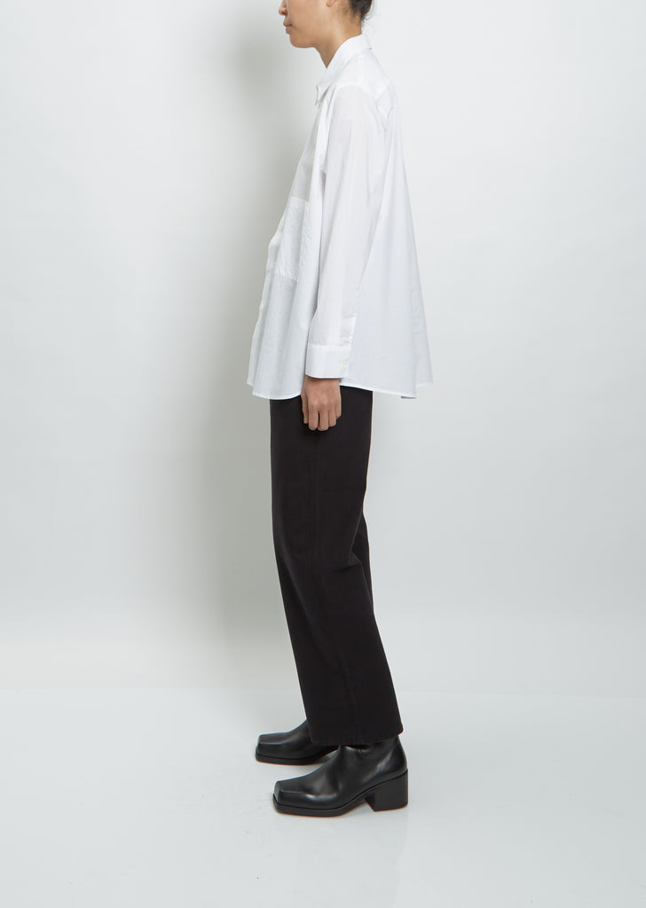 Hope white signature button front shirt with a low patch pocket in crisp cotton poplin.
