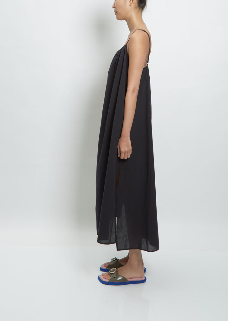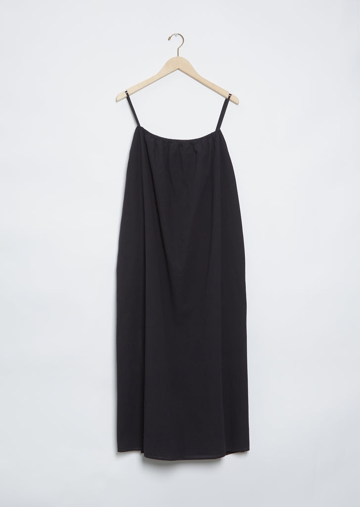 Hope black relaxed strappy elastic round neck long dress in a lightweight and airy textured cotton.
