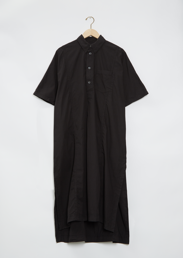 Hope black tunic shirt dress with paneled dolman sleeves and a pointed collar in a cotton sear-sucker.