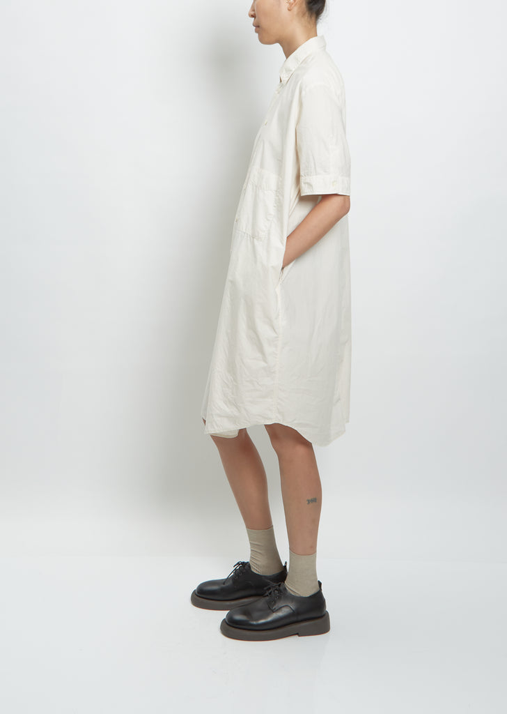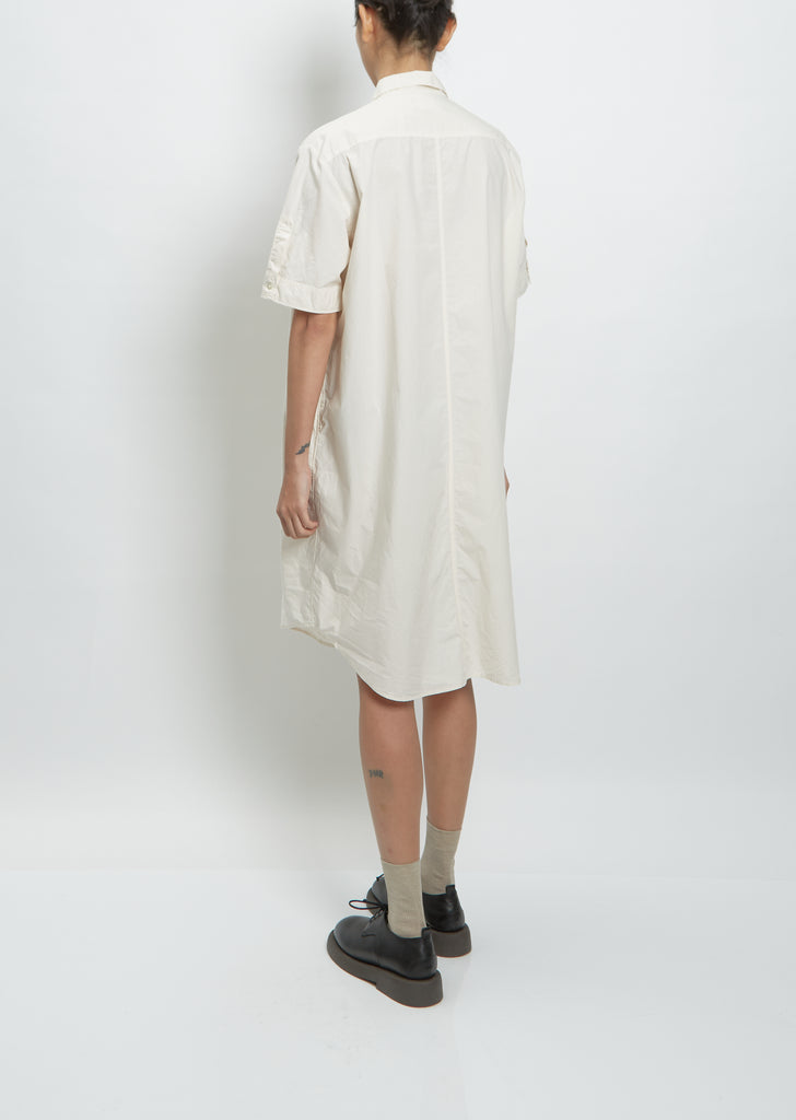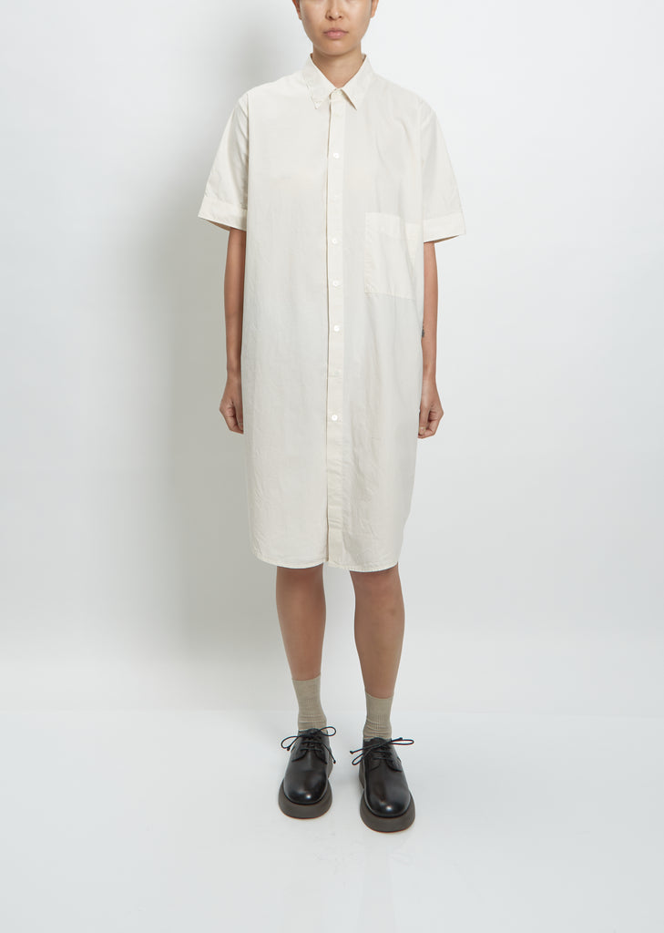 Hope ivory short sleeve button-down shirt dress with pointed collar in a lightweight cotton.