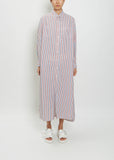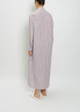 Hope blue, red and white striped long shirt dress with side slits in a lightweight cotton broadcloth.