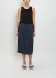Hope dark navy slip skirt with drawstring tie waistband and side slit in a silky viscose blend.