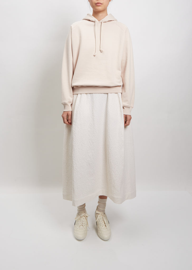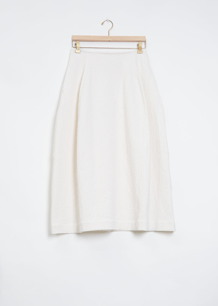 Henrik Vibscov off-white a-line midi skirt in a stretch cotton sear sucker.