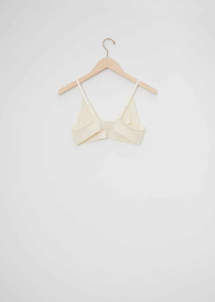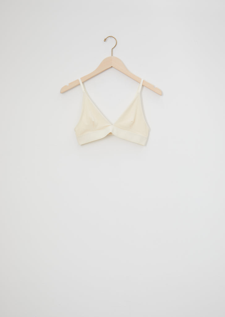Baserange Triangle Rib Bra in Off White. Brand signature soft triangle shaped bra made of soft bamboo rib jersey with stretch.
