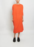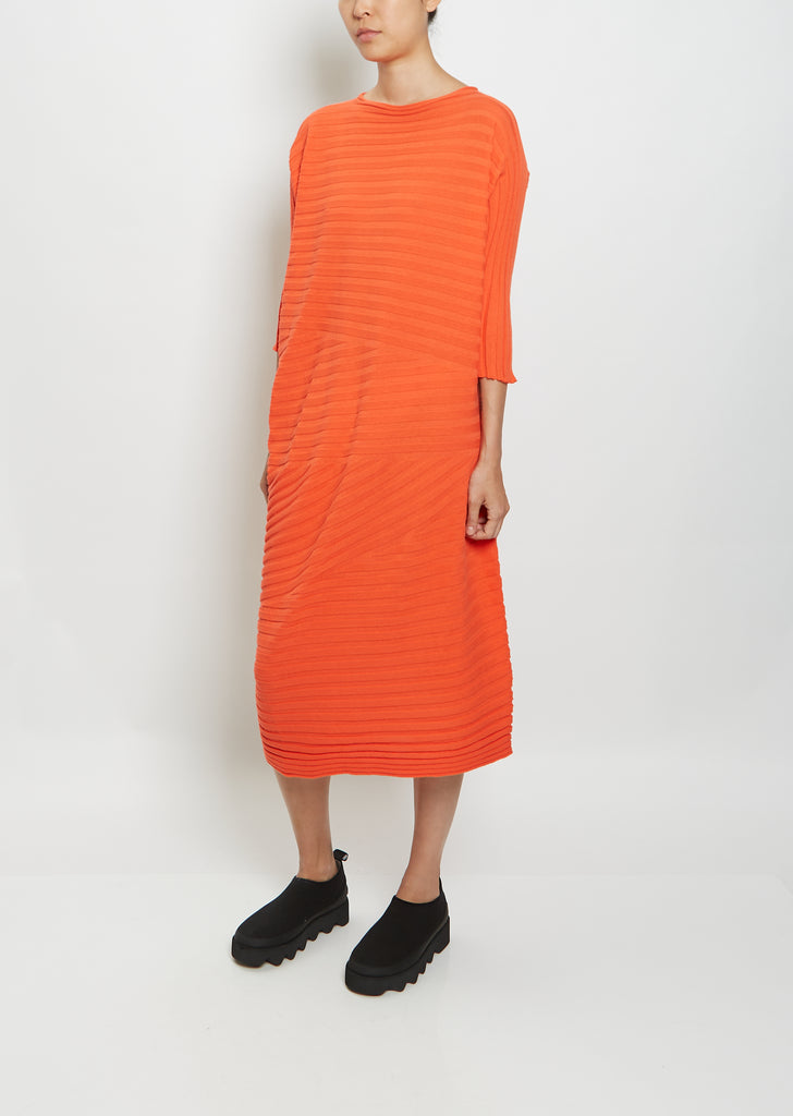 Issey Miyake red zig-zag rib knit midi dress with a dolman 3/4 sleeve in a lightweight cotton blended knit.