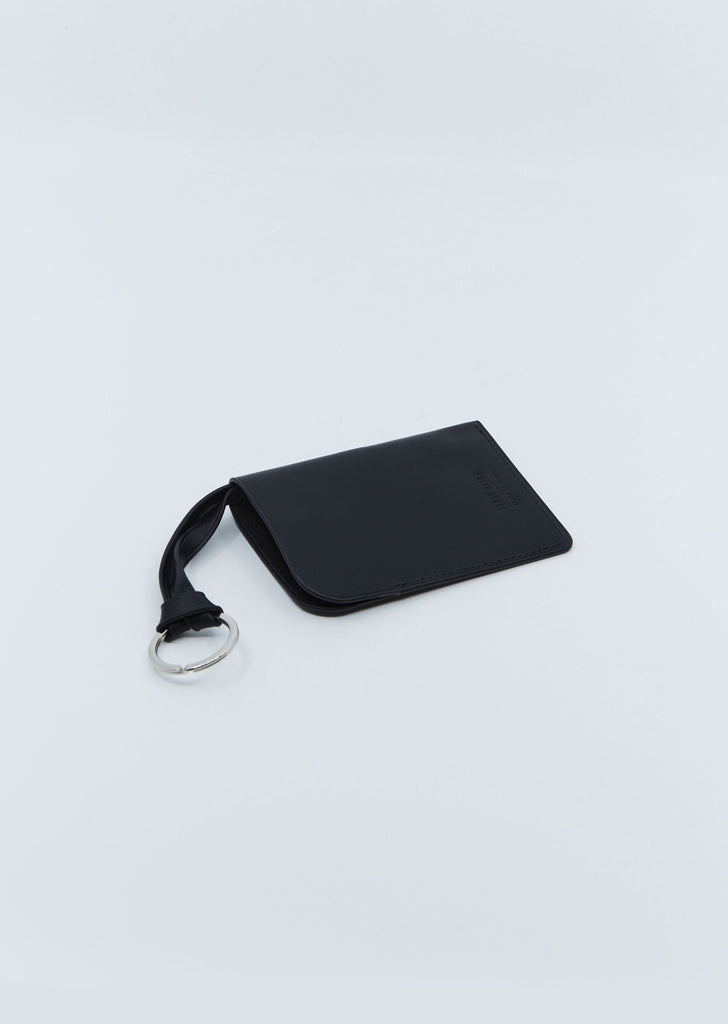 Isaac Reina key pouch in black leather with a silver-toned ring. Key ring measures 1.18-inch (30 mm) in diameter. Also available in natural.