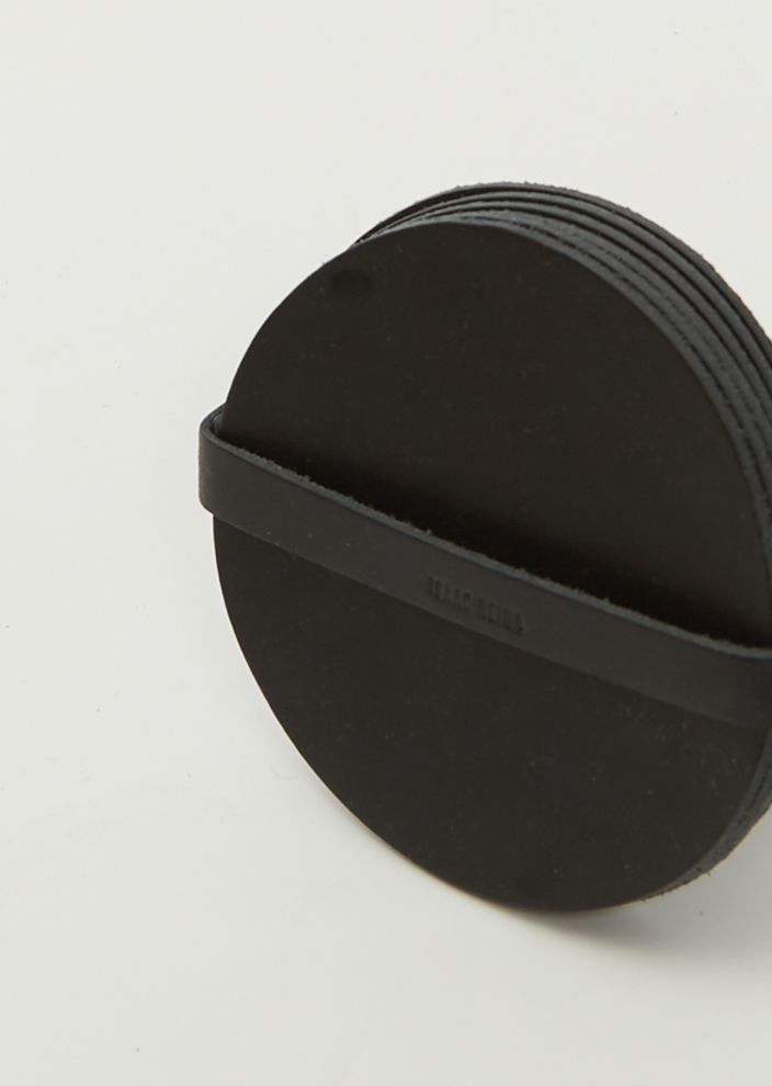 Isaac Reina set of 6 black round coasters handcrafted in France in a smooth vegetable tanned calf leather.