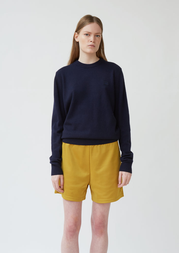 A cozy fine-knit wool sweater featuring the Acne Studios "Face" logo on an inconspicuous appliqué. Pullover style. Long sleeves. Rib-knit crewneck, cuffs, and hem. Tonal logo appliqué at chest. Also available in Dark Grey Melange.