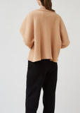 Rosy-beige merino-wool rib-knit sweater designed with a classic crewneck, extra-long sleeves, and a slightly cropped length. Narrower rib knit at neckline. Kimono sleeves. Straight hem. Slouchy, oversized fit.