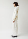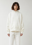 Long-sleeve hooded sweatshirt constructed from off-white heavy cotton fleece. Pulls over. Button-through center-front closure at hoodie. Tonal button. Drop shoulders. Kangaroo pocket. Flat-fell seams throughout. Tonal stitching. Straight hem falls to lower hip. Straight, relaxed fit.