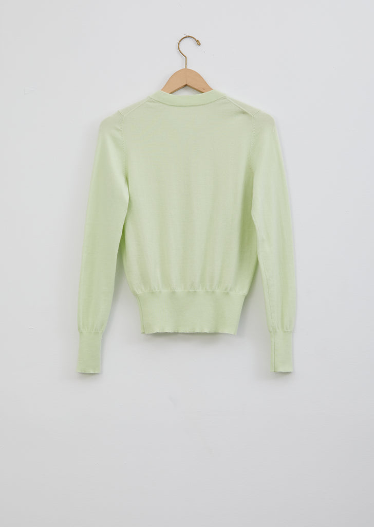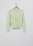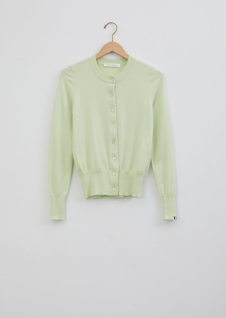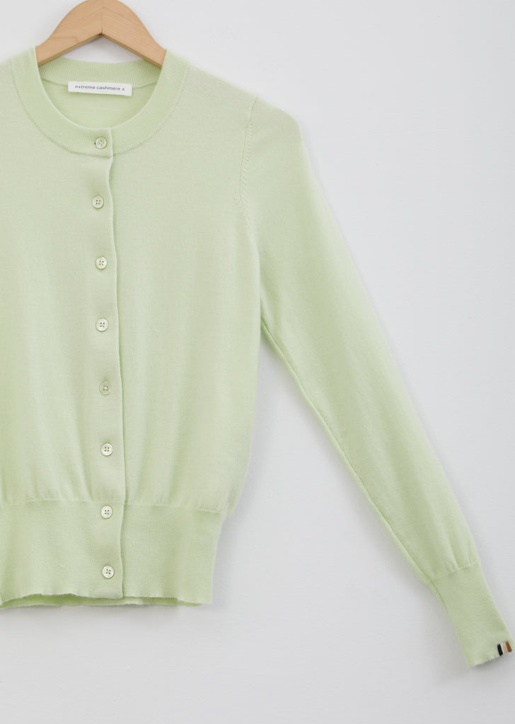 Little Cardi in Lime Amsterdam-based label, Extreme Cashmere. A classic cardigan with a petite fit. We love it as a shrunken sweater.
