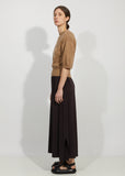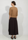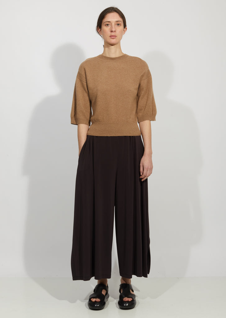 Safari-beige half-sleeve sweater stockinette-stitched from brushed cashmere yarn. Features a crewneck, drop saddle shoulders, and a cropped length.
