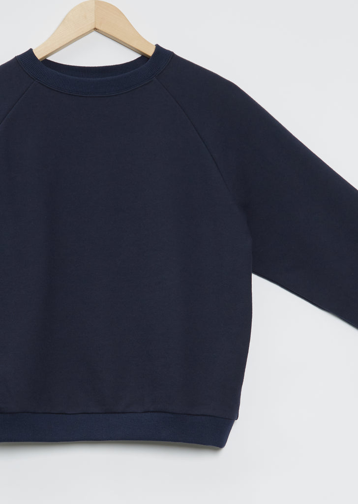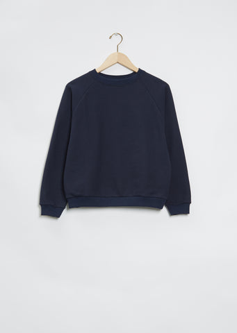 La Garçonne Moderne dark denim signature everyday elevated sweatshirt with a raglan sleeve in an ultra-soft Japanese cotton.