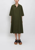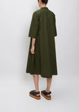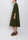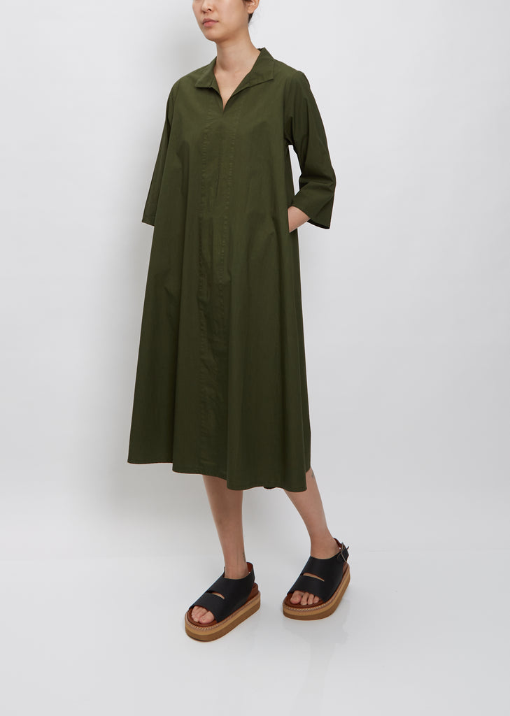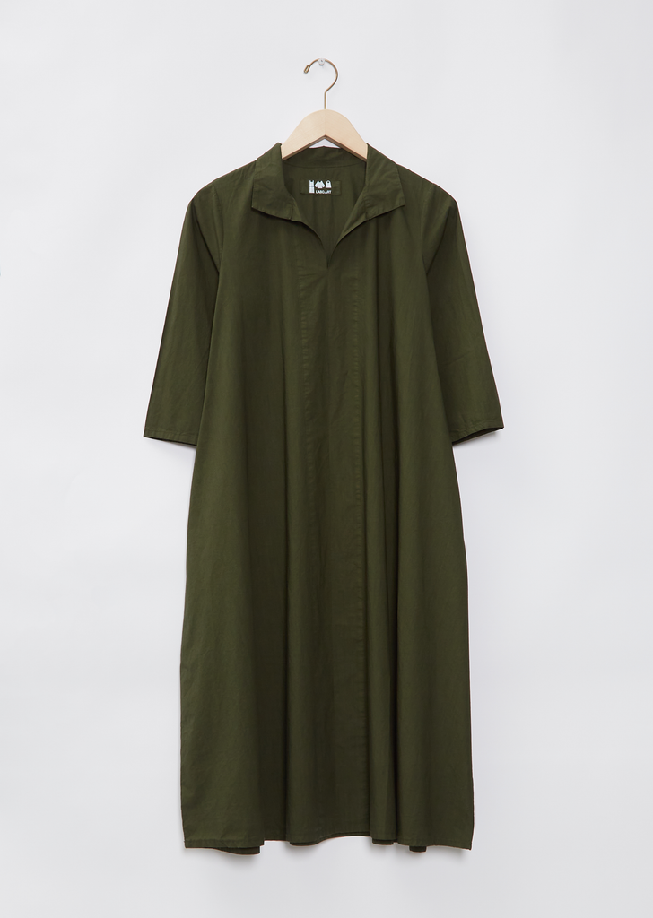 Labo.art olive green a-line v-neck shirtdress with collar in a washed cotton poplin.