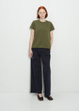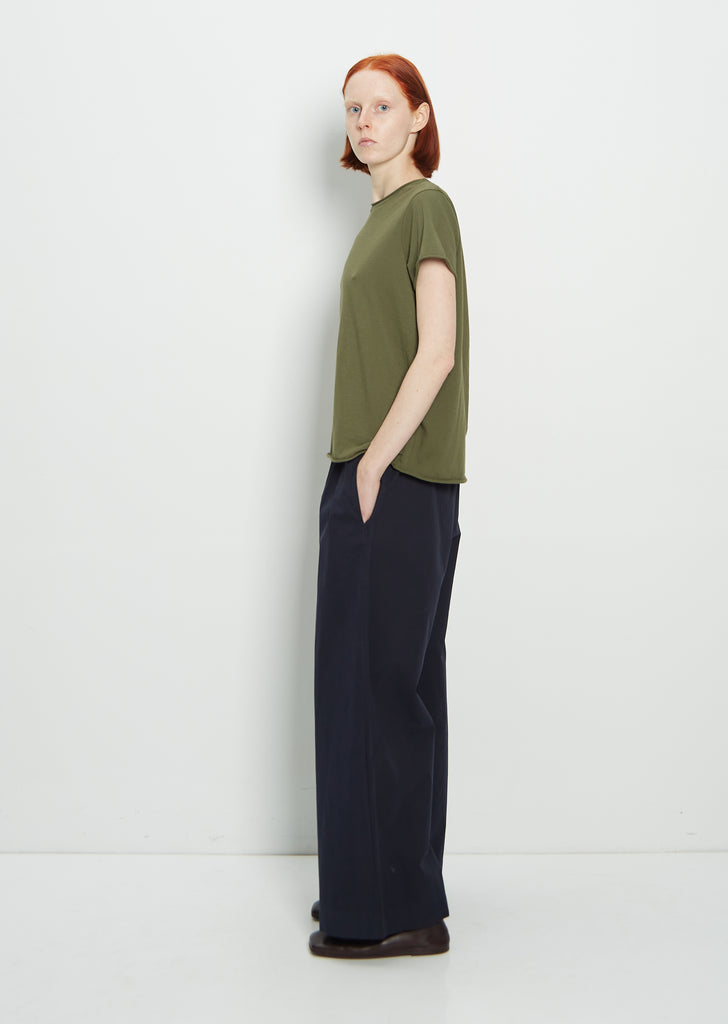 Labo.art olive signature T-shirt with a rolled finish at neckline, sleeve cuffs and hem in soft stretch cotton jersey. Relaxed fit.