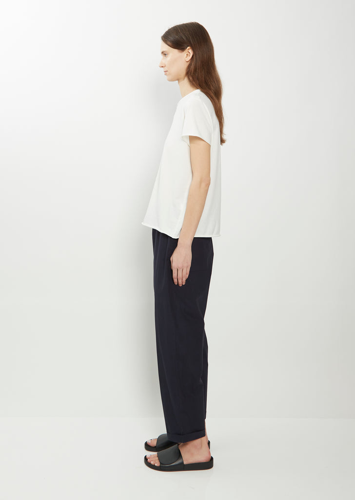 Labo.art winter white signature T-shirt with a rolled finish at neckline, sleeve cuffs and hem in soft stretch cotton jersey. Relaxed fit.