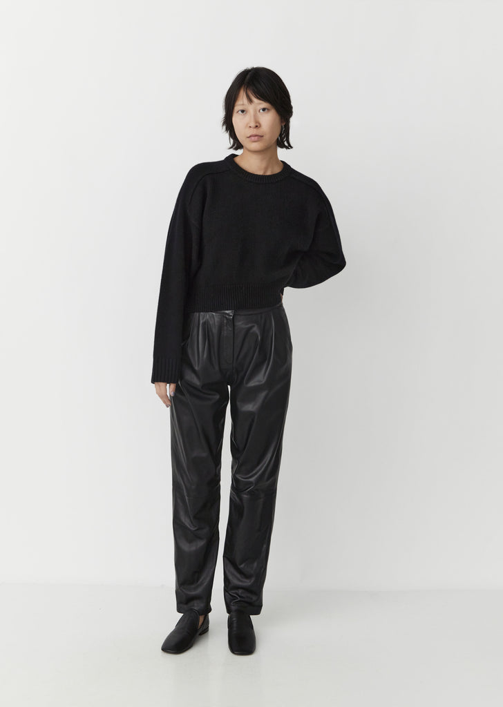 FW'20 Collection — Knitted in a blend of wool and cashmere, ivory crewneck sweater with full-length saddle sleeves in a cropped length. Finished with a wide rib trim at sleeves and hem. Also available in Ivory.