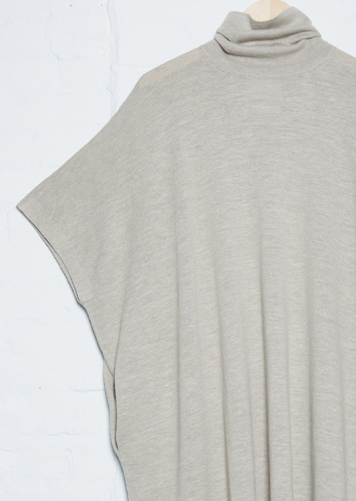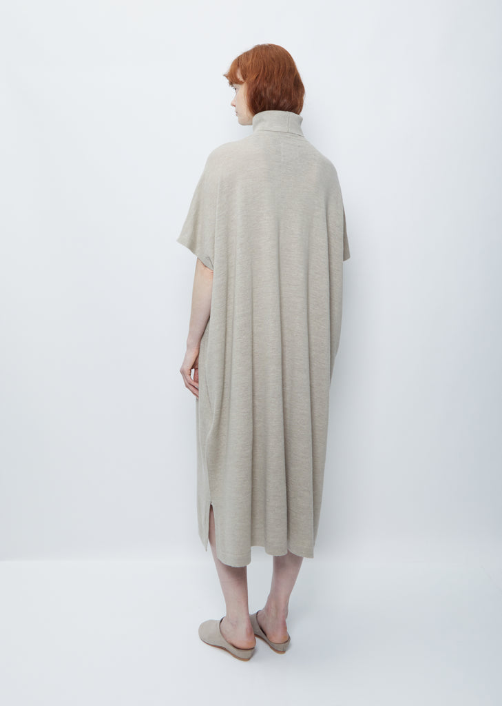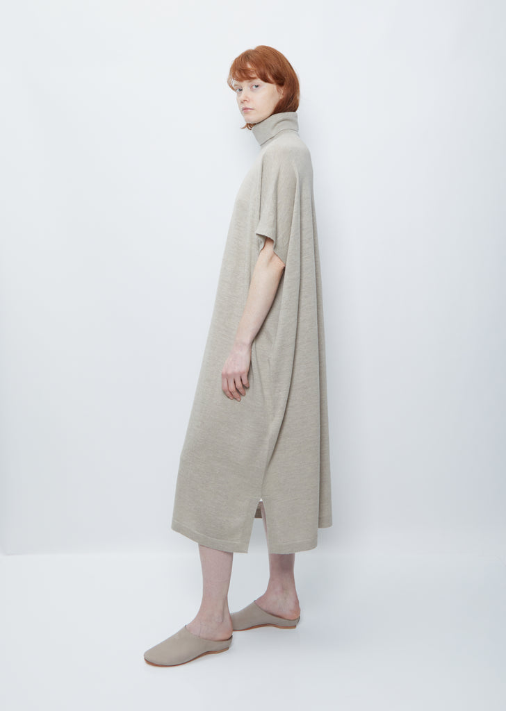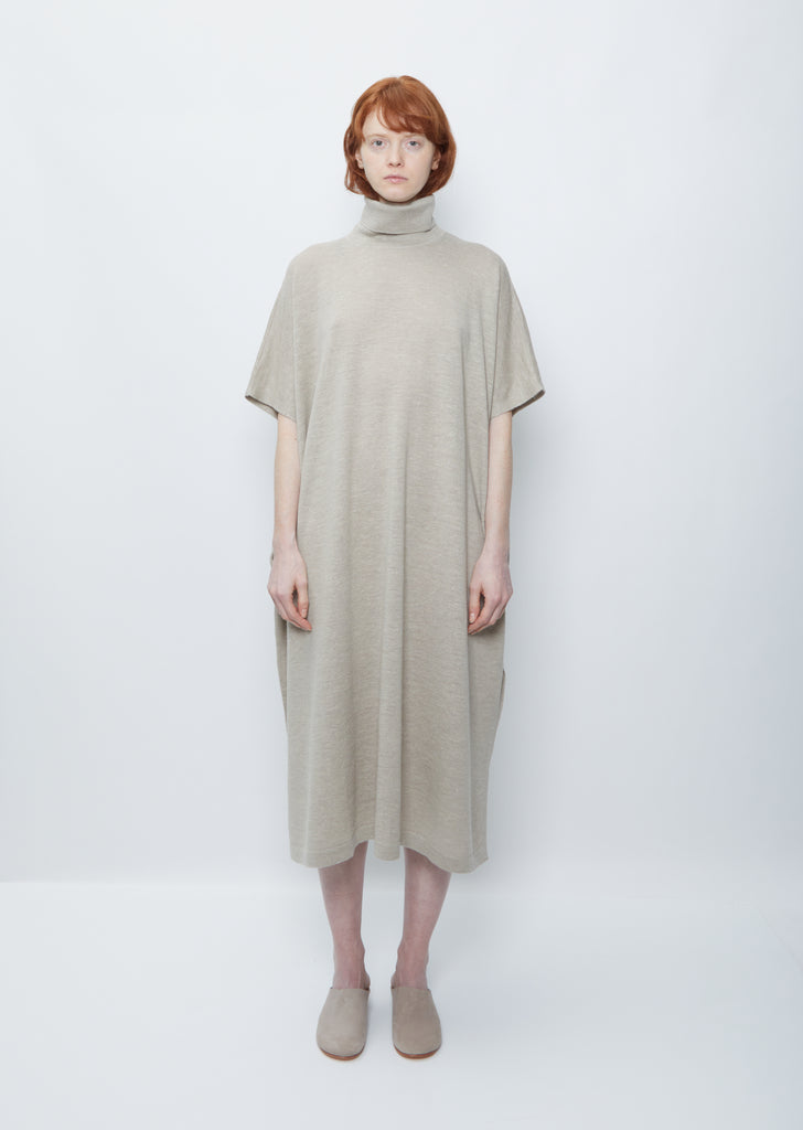 Lauren Manoogian pale beige oversized turtleneck sweater dress in a mid-weight baby alpaca and linen knit.