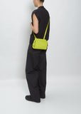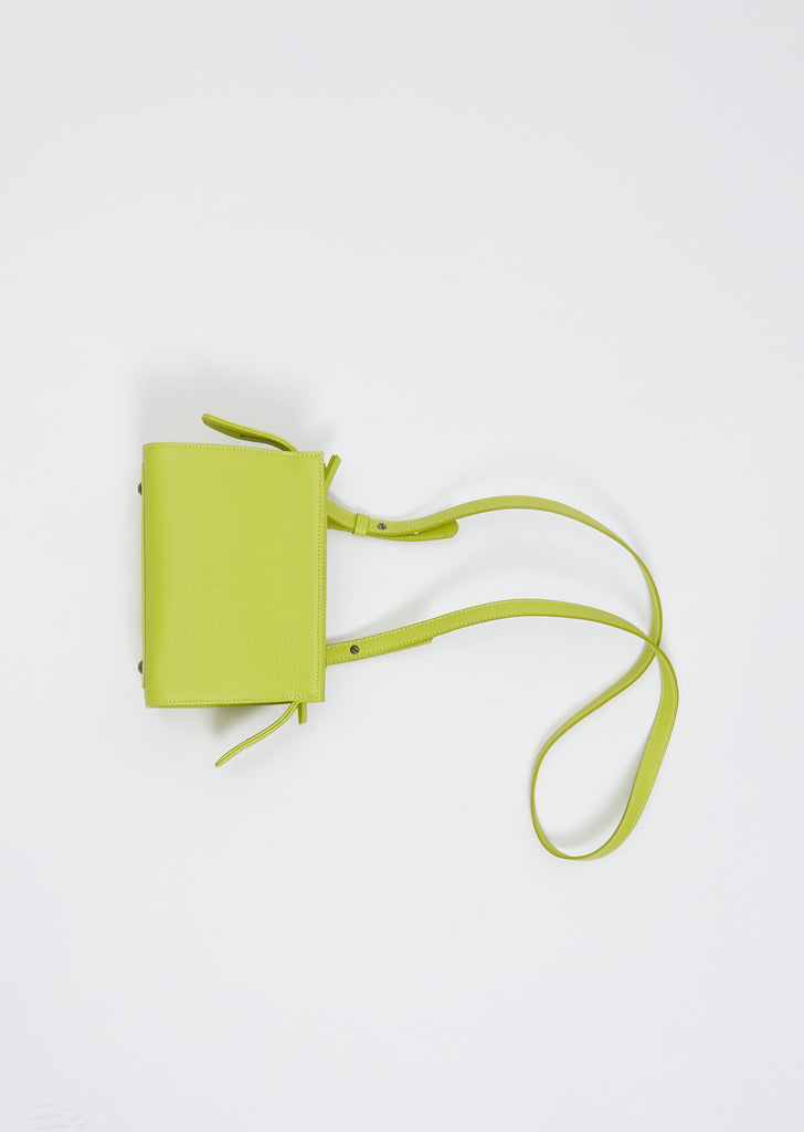 Marsèll lime green mini shoulder bag with an elongated leather covered zipper in a grained calf leather.
