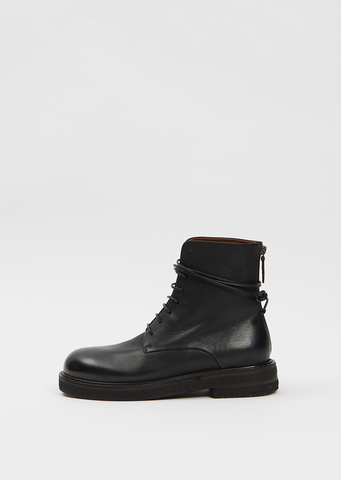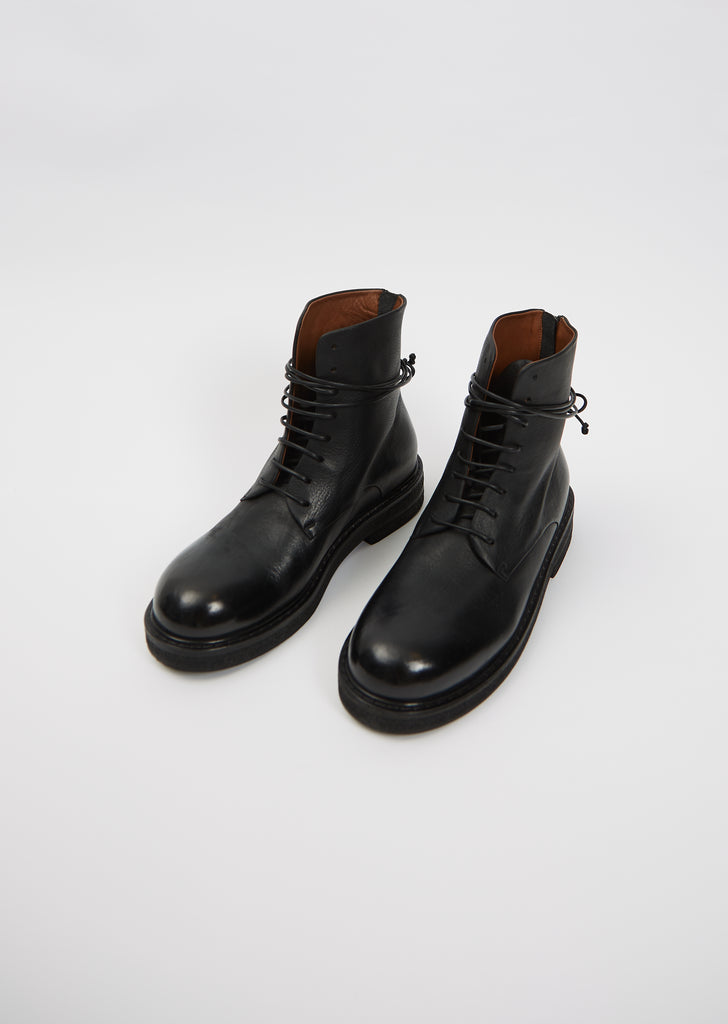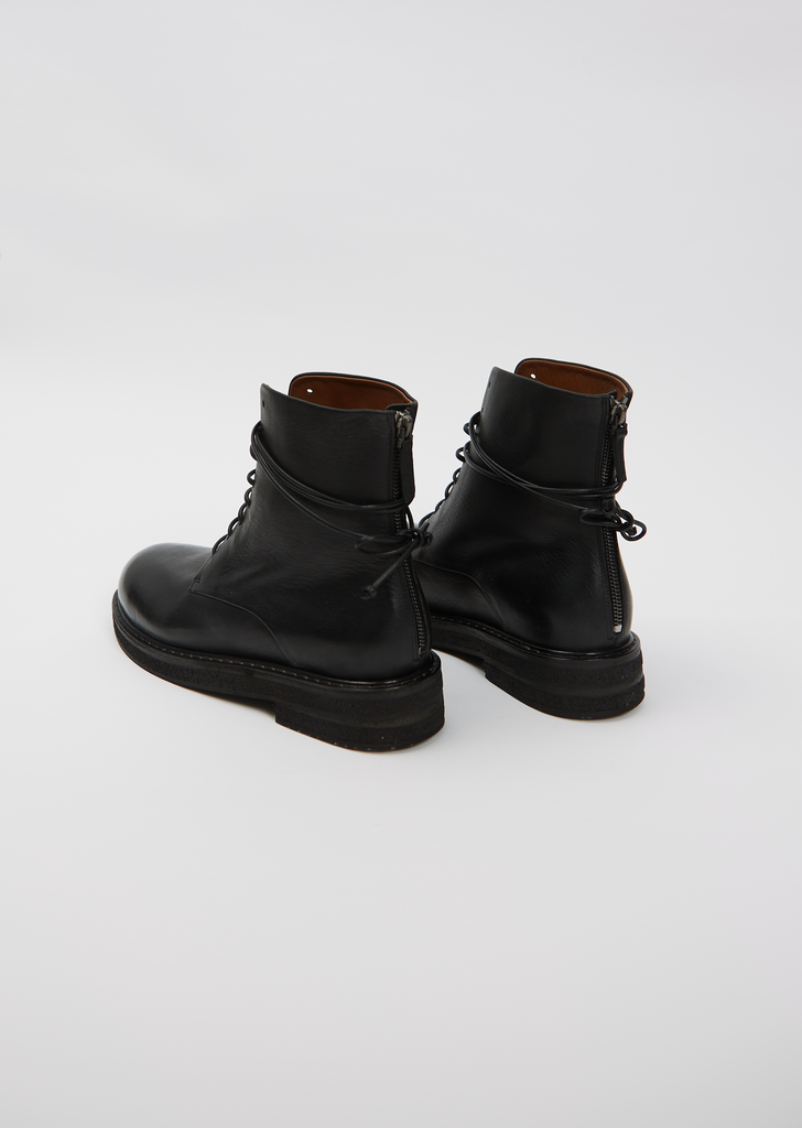 Marsèll Parrucca lace-up combat boot with a back ankle zipper in black grained leather.