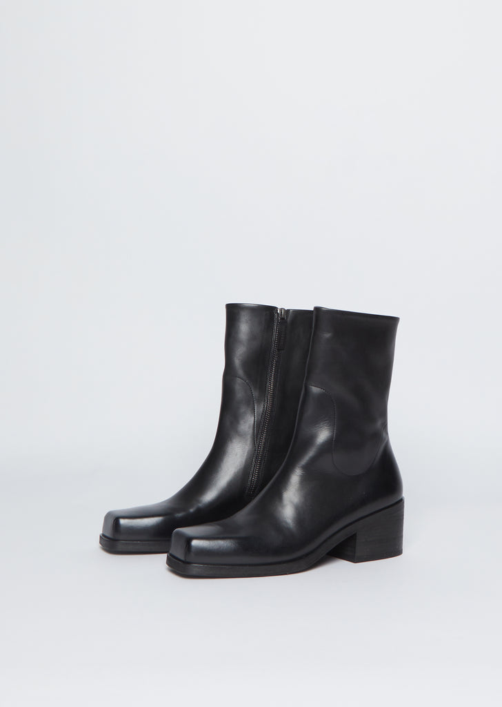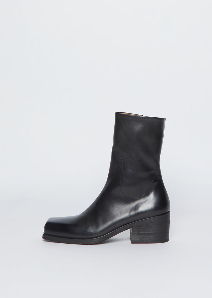 Marsèll black square-toe mid-calf boot with with a block heel in a smooth leather.