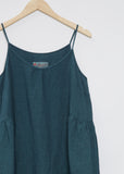 Manuelle Guibal galapagos green sleeveless tunic dress with a shirring detail at the sides in a textured linen.