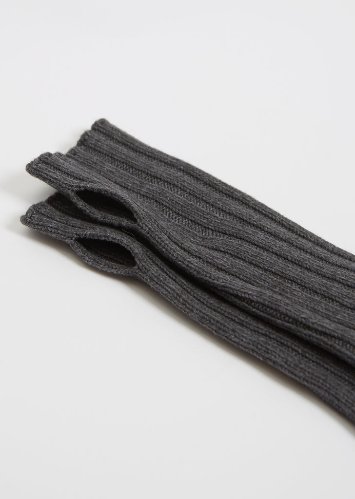MHL by Margaret Howell rib wrist warmer with thumb side opening in heavy gauge lambwool and cotton blend knit.