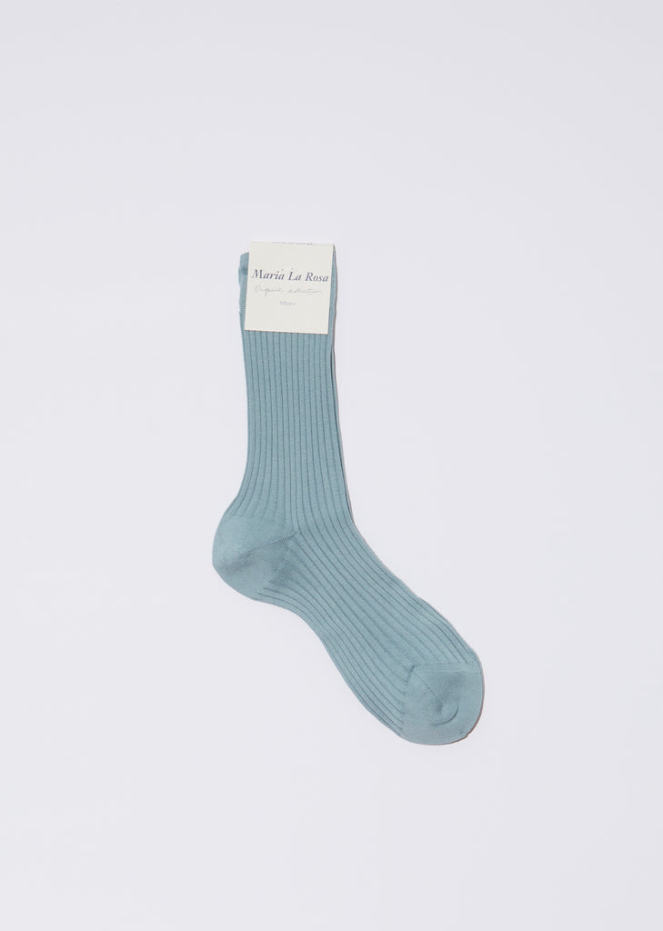 Maria La Rosa Organic Mid Calf Socks in Argento. Handmade in Italy, seafoam-toned everyday ribbed socks in organic cotton.