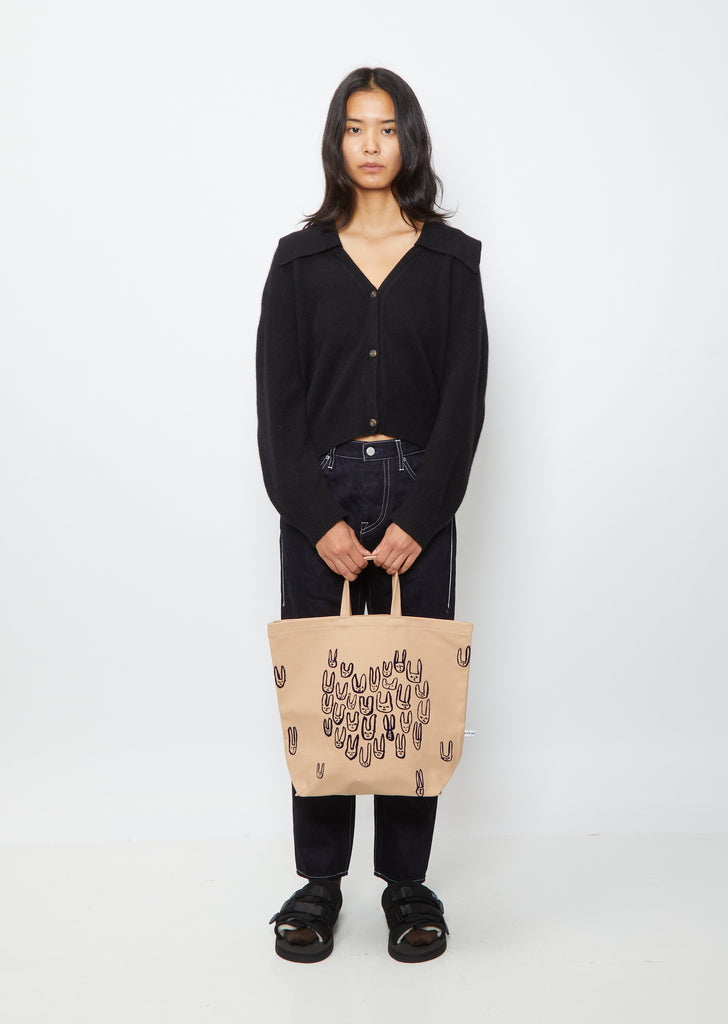 Minä Perhonen tote bag with flocked animal motif in 100% cotton canvas. This everyday tote has two top handles and is finished with a gusseted base.