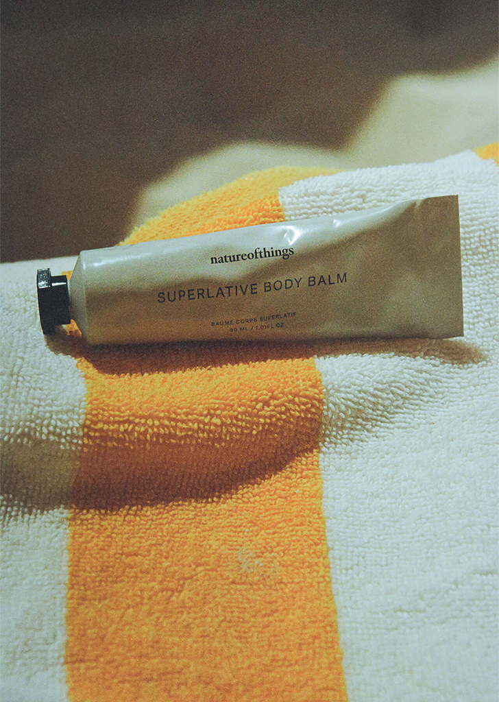 Natureofthings cooling and therapeutic Superlative Body Balm penetrates deep into the skin to ease tension and soreness. A mix of potent botanicals including arnica, ginger, turmeric and boswellia target inflammation, aches and pain. Moisture-rich emollients like Jojoba oil and shea butter quench dryness while cooling menthol adds an invigorating sensation. Apply anywhere you experience discomfort.