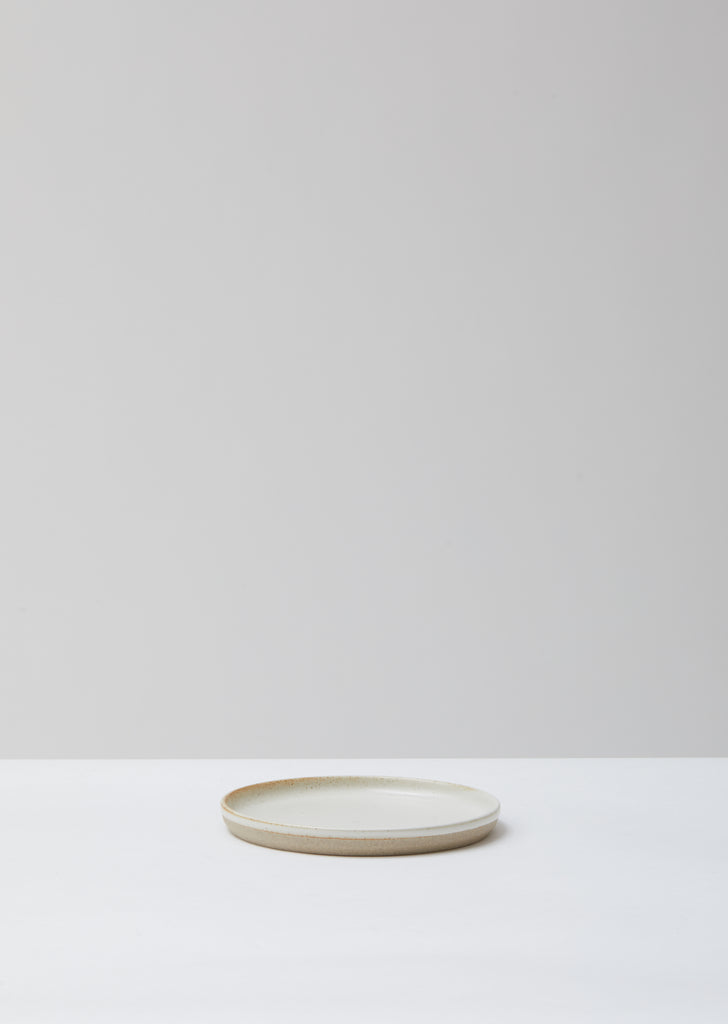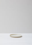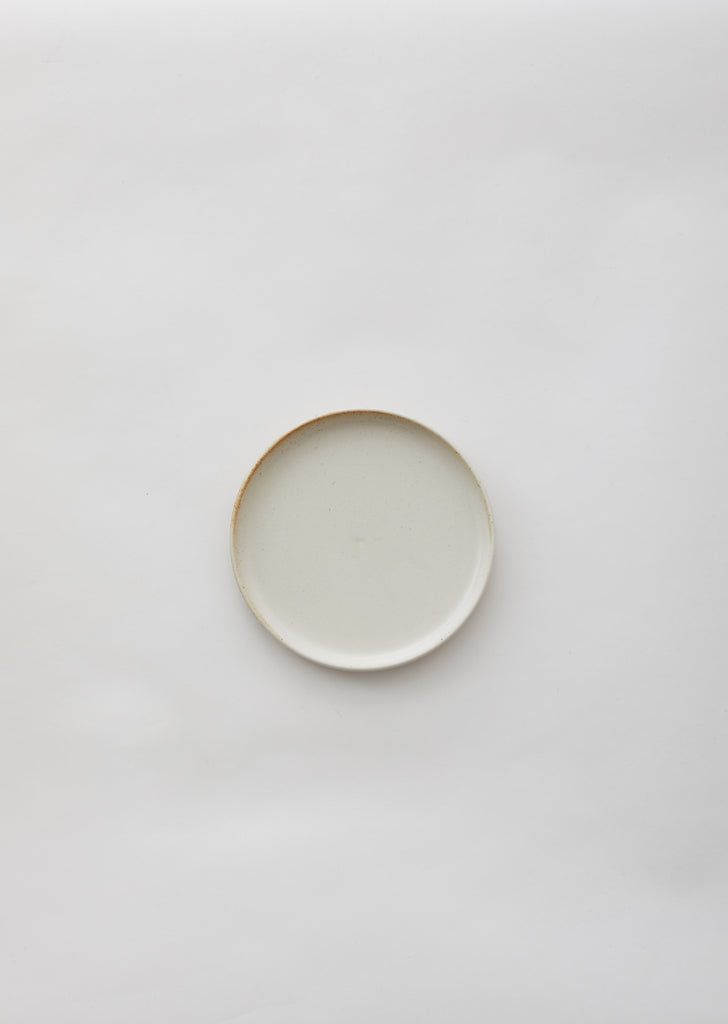 Small white ceramic plate featuring Hasami sand stone mixed with Amakusa stone creating a ceramic-like delicateness with added durability. Kinto's CLK 151 collection is a fresh interpretation of Japanese tableware Porcelain for the modern lifestyle; sleek and durable with a humble yet dignified presence.