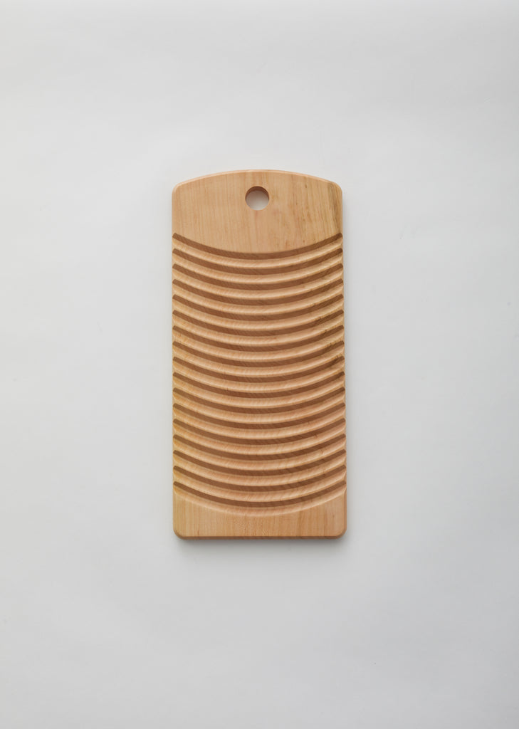 Hand-carved in Kochi, Japan, of water- and warp-resistant cherry wood, Tosaryu’s ridged rectangular washboard helps to remove tough stains from clothes. Finished with a hole for hanging.