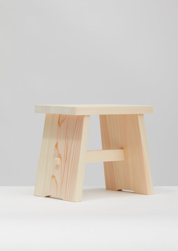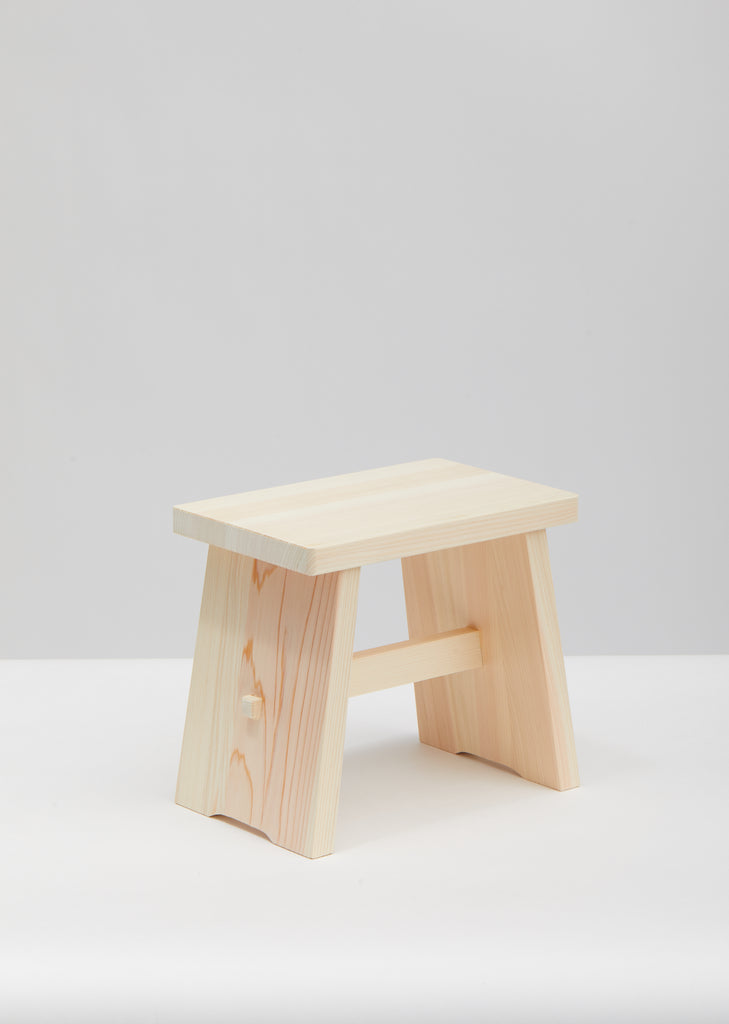 Natural-finish multipurpose stool hand-crafted in planks of Japanese Hinoki Cypress, renowned for its fragrant properties and natural resistance to water. Can be used for stepping, sitting, bathing, or displaying.