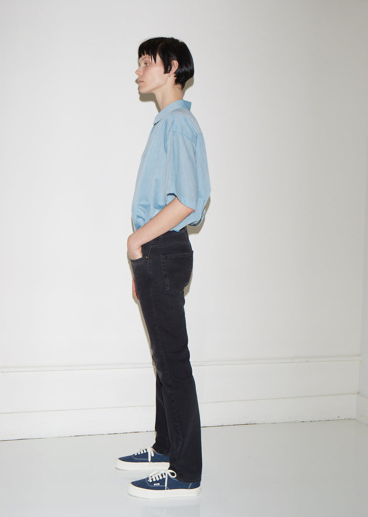 The label's slim straight jeans in washed coal are crafted in Italy with classic five pocket styling, with subtle whiskering through the legs for a worn-in signature finish. Detailed with a zipper fly and engraved button closure, with copper-tone rivets. Finished with belt loops at the waist and a grey leather logo patch in back. This classic jean is made from 100% cotton, and will mold to the body over time. Color: Coal. 100% Cotton. Made in Italy.