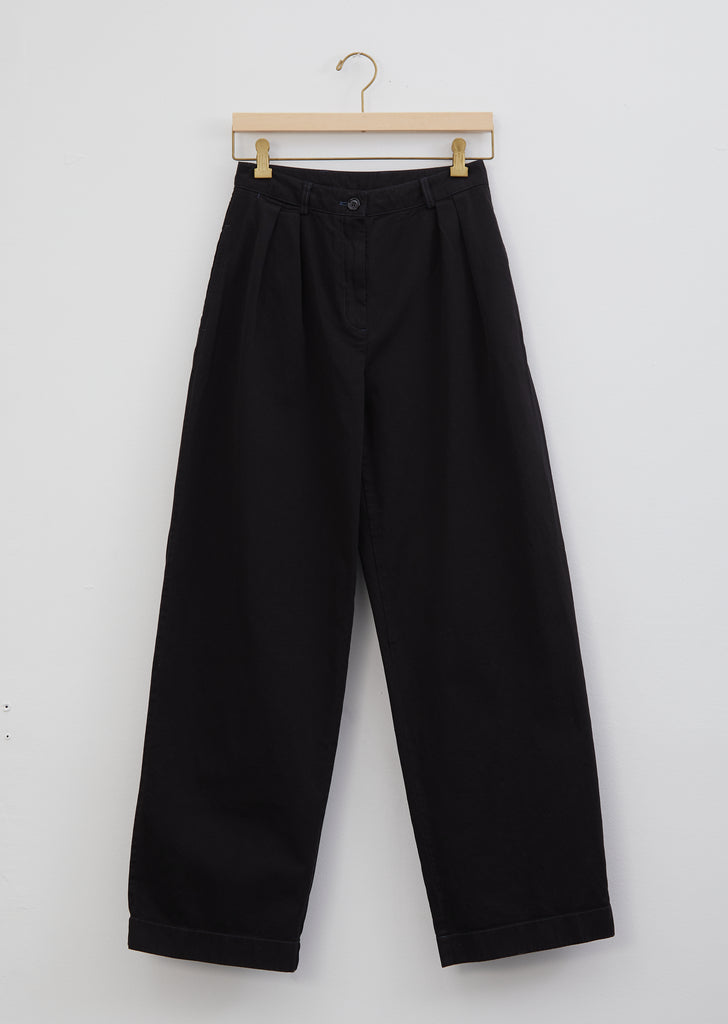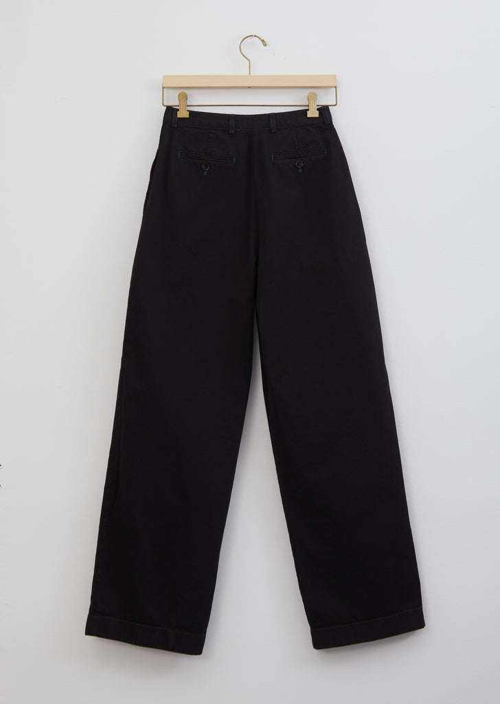 Acne Studios Pavi Trousers in a cotton twill. These chino style trousers feature a pleated front and contrast blue stitching detailing throughout.
