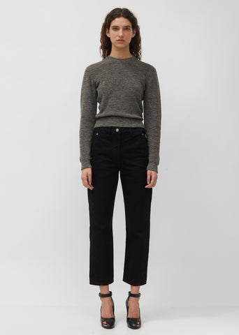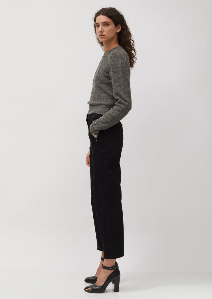 Lemaire Twisted pants in garment dyed black denim. One of Lemaire's bestselling styles, it features a flattering twisted seam leg opening and sightly high-waisted fit.  Perfect for daily wear, the denim will soften with wear and mold to your frame.