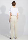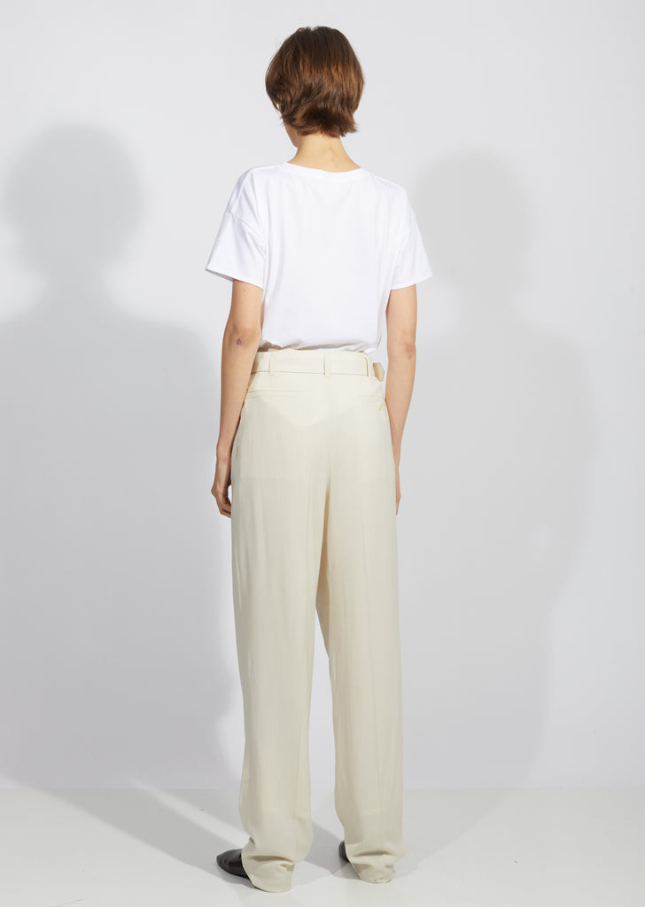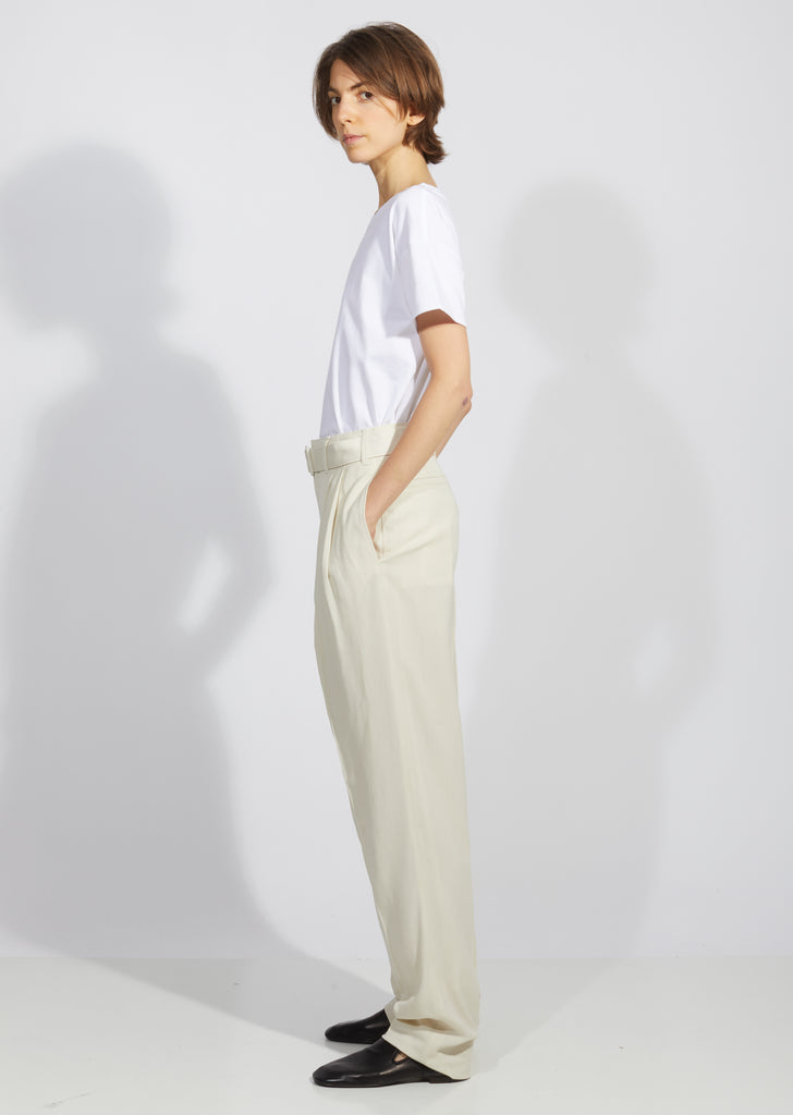 Pale-cream double-pleated wide-leg pants in fluid wool-viscose suiting. This menswear-inspired passage is completed with an optional self-fabric cinch belt.