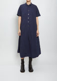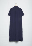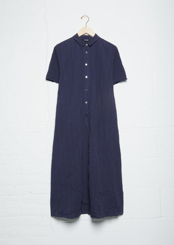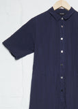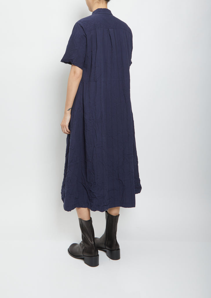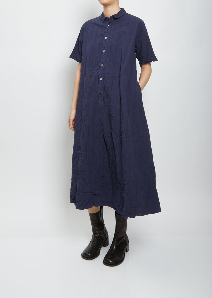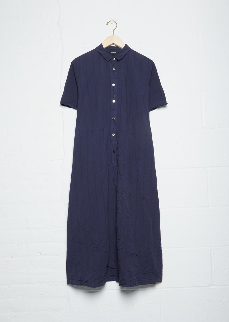 Pas de Calais navy tonal pinstriped button down shirtdress in a wrinkled cotton.