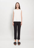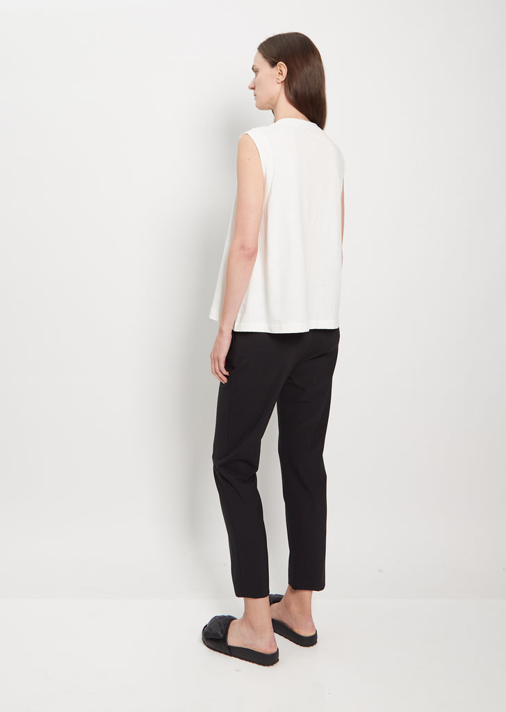 6397 essentials white tank top with an a-line silhouette and round neck in cotton linen slub jersey. Features wide trim finish along neckline, sleeves, and hem.
