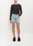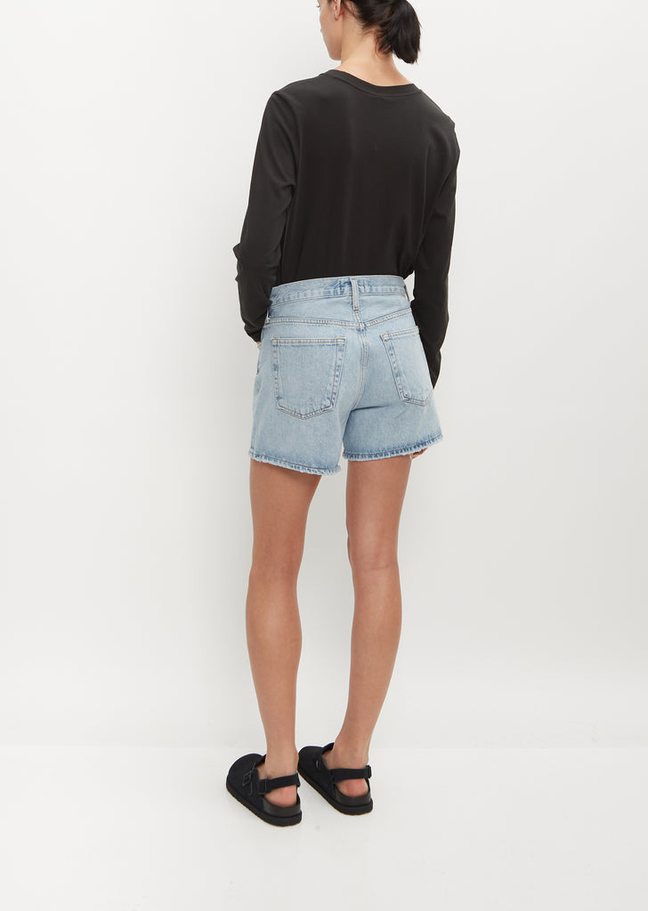 Agolde twister wash shorts with a longer inseam and a high-rise fit in organic cotton denim. 5-pocket styling. Button fly fastening. Relaxed fit designed to sit at the natural waist.